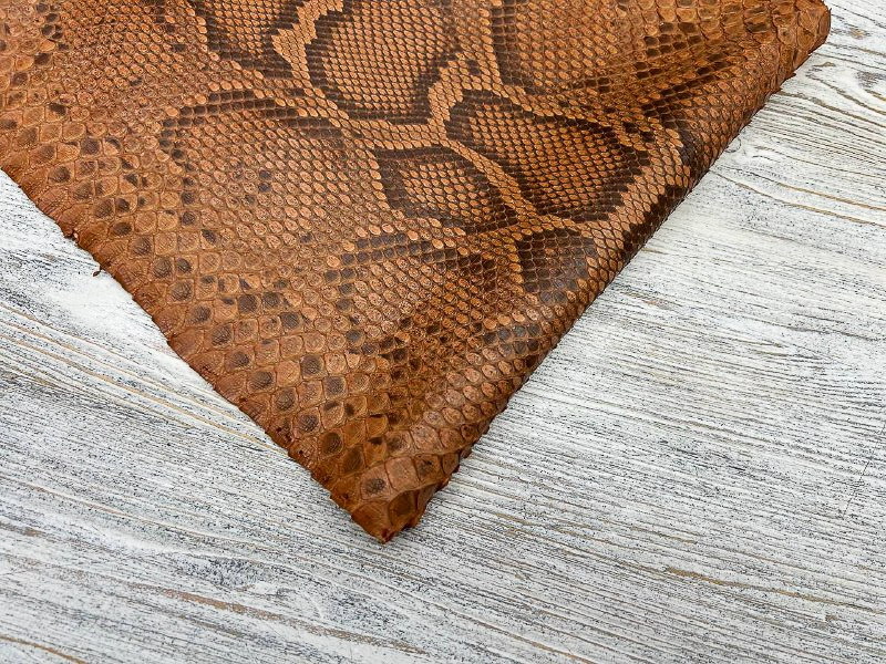 Это может быть целая шкура питона длиной до 5 метров, либо более короткие шкуры — в зависимости от сырья и производителя. Все позиции у кожи питона представлены с конкретной длиной, шириной и рекомендацией по применению. Продажа идет от 1 погонного метра.