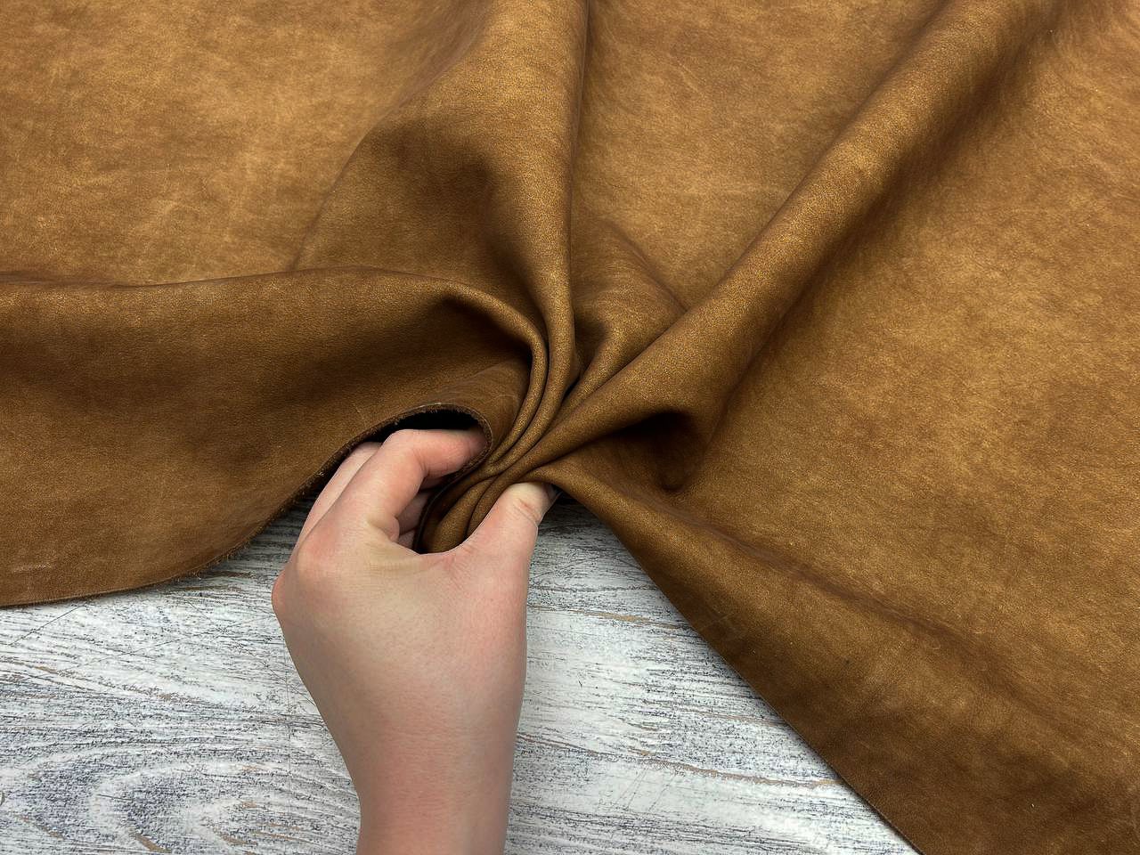 Описание: Перед вами 2 шкуры от фабрики Ecopell (Италия) - это кожа с прекрасной выделкой под нубук и красивым облачным окрасом. Кожа пластичная, оборотная сторона в тон лицу. Высокотактильная, прекрасно драпируется и подходит для выворотных изделий и изделий мягких форм.
