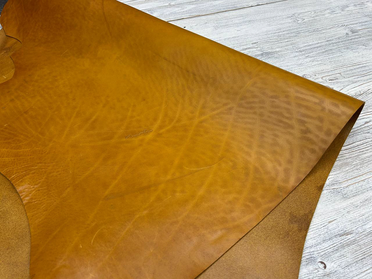 Это кожа сквозного крашения, максимально наполненная, с гладким лицевым рисунком с мелкой структурой и красивым природным рисунком, кожа достаточно плотная, но при этом обладает высокими пластичными свойствами, отлично формуется, а также достаточно хорошо держит форму.
