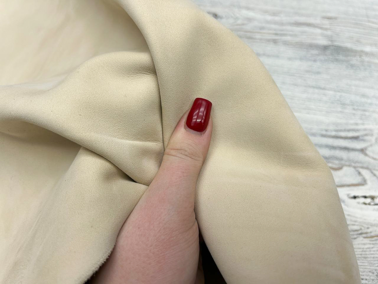 Свойства: нубук мягкий и пластичный, тактильный приятный на ощупь. Прекрасно драпируется и ложится в изделие.