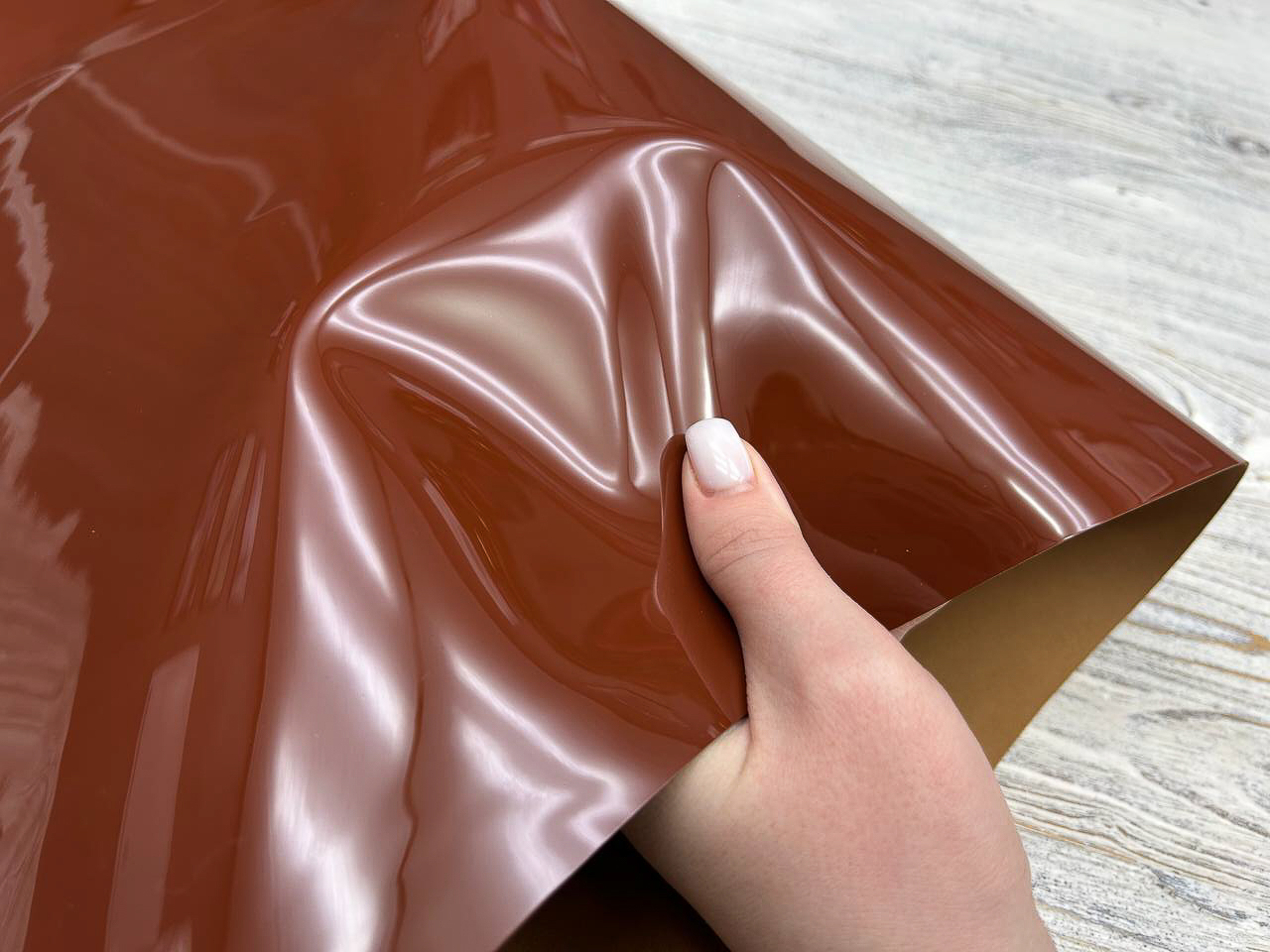 Данная фабрика специализируется на изготовлении кожи для люксовых брендов, данная партия лака была изготовлена для коллекции сумок, обуви и аксессуаров для бренда Jimmy Choo.