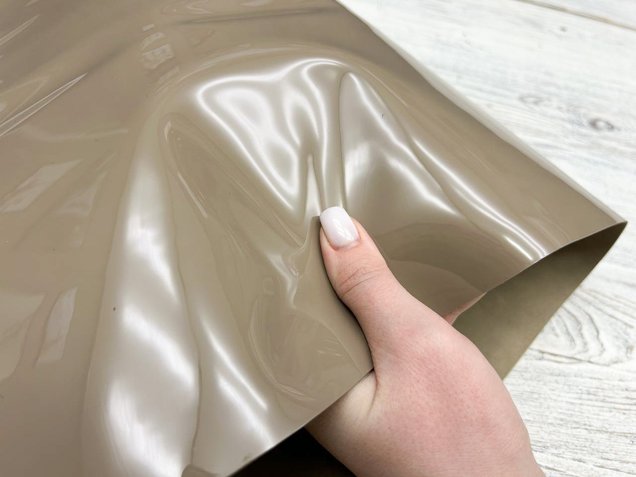 Данная фабрика специализируется на изготовлении кожи для люксовых брендов, данная партия лака была изготовлена для коллекции сумок, обуви и аксессуаров для бренда Jimmy Choo.