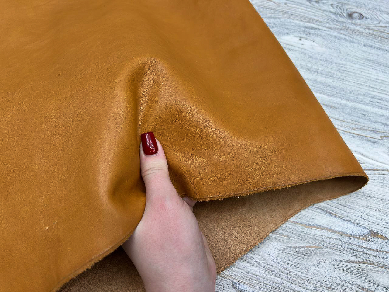 Натуральная кожа Vacchetta Washed Honey Natura - кожа растительного дубления премиального качества (Италия).