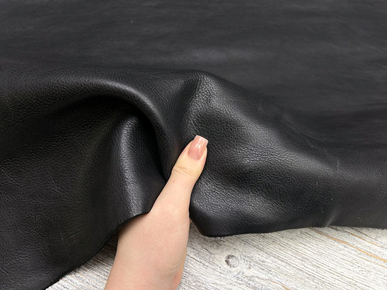 Описание: Это лицевая кожа растительного дубления с натуральным зерном, которое получилось в результате операции - разбивка в барабане. Кожа сквозного крашения, с финишем, с хорошей открытой оборотной стороной. Кожа имеет идеальное наполнение, она живая, пластичная, способна достаточно хорошо держать форму.
