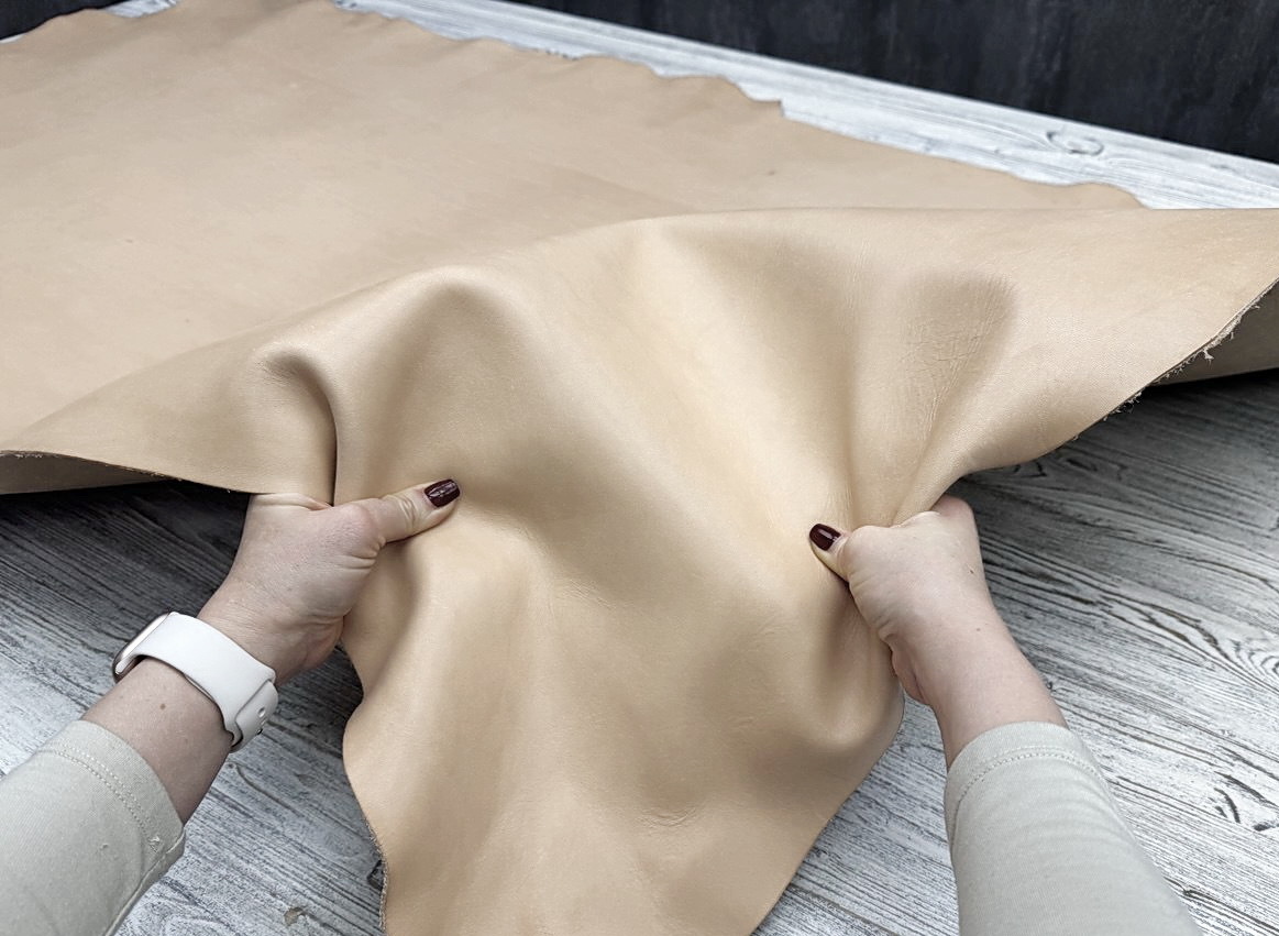 Кожа идет с деликатной обработкой маслами, без окраса, без разбивки.