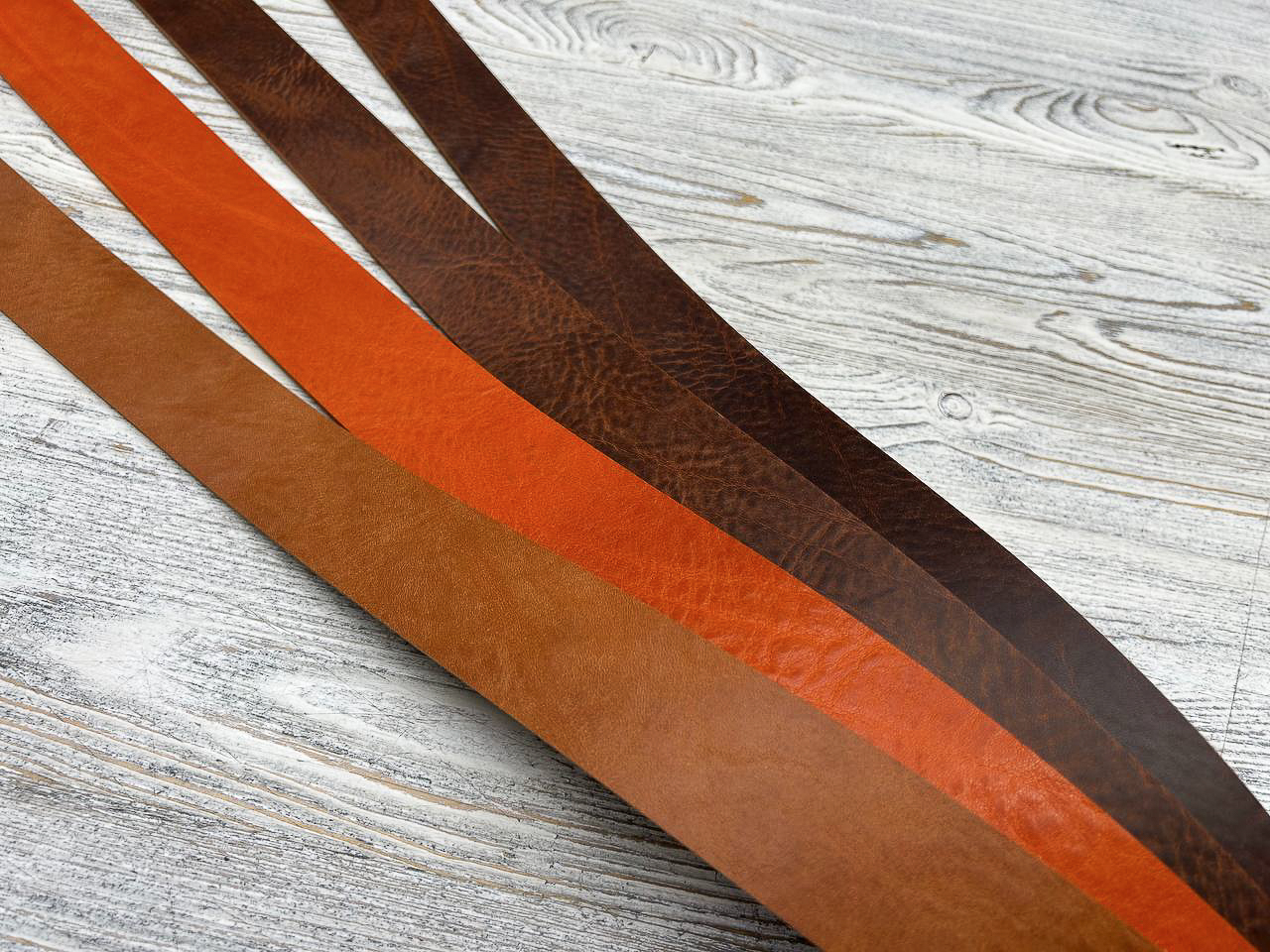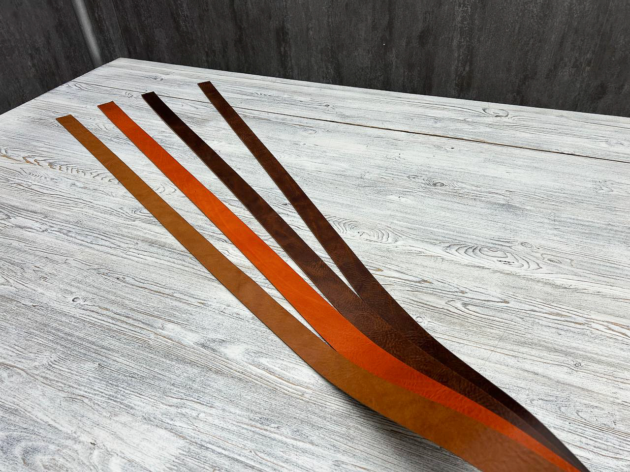 Лот ременных заготовок растительного дубления, который состоит из артикула Миссури и Амазония в разных оттенках в толщине 3,2-3,4 мм+