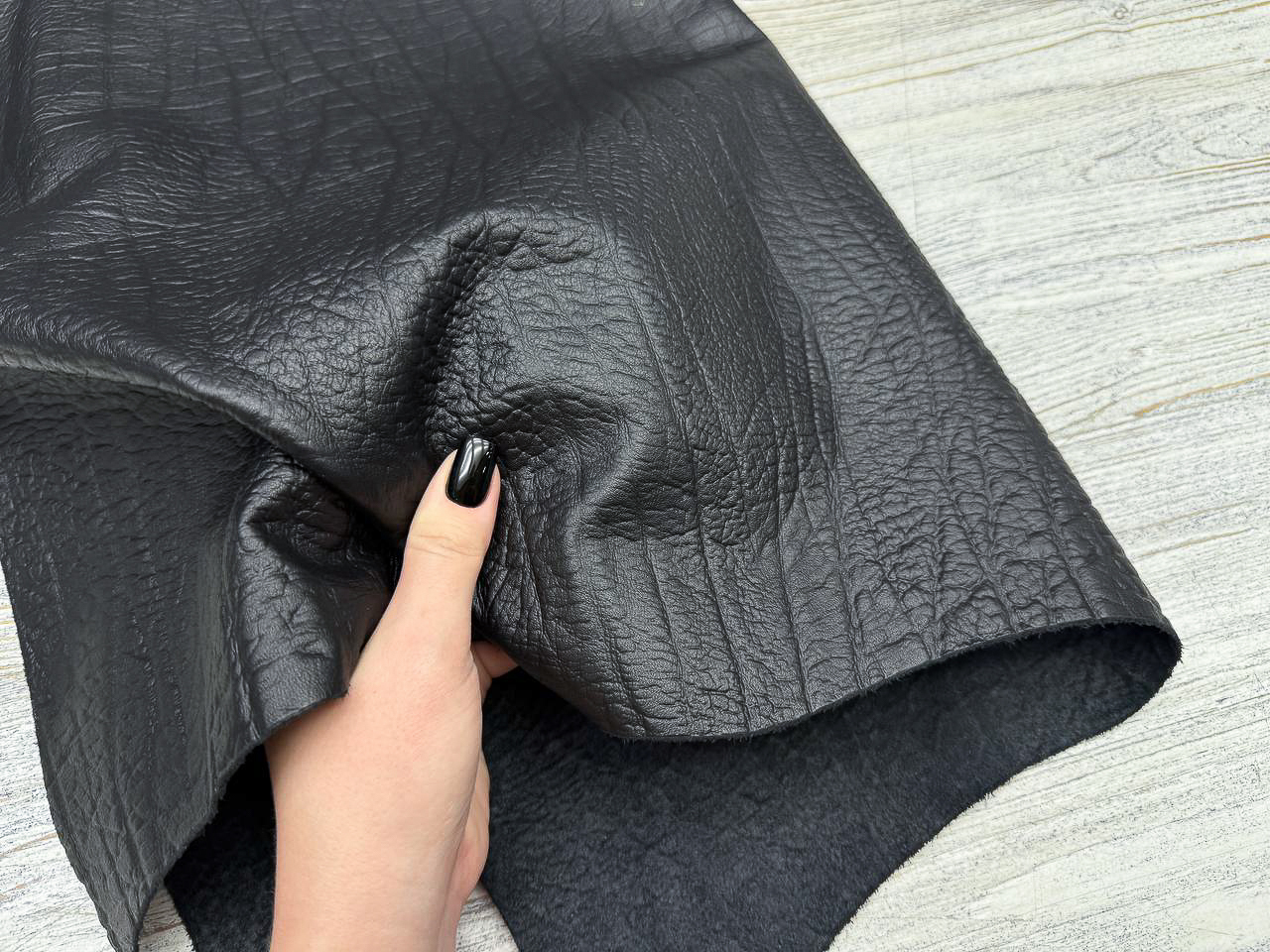 Это артикул комбинированного дубления сквозного крашения с тиснением на лицевой поверхности под кожу слона. Большое крупное зерно с выраженной фактурой прекрасно вписывается в современный классический стиль.