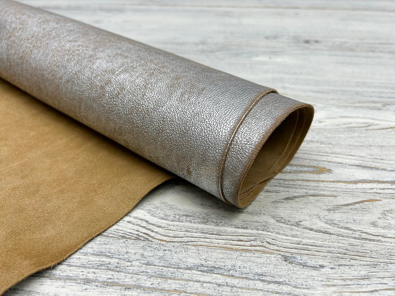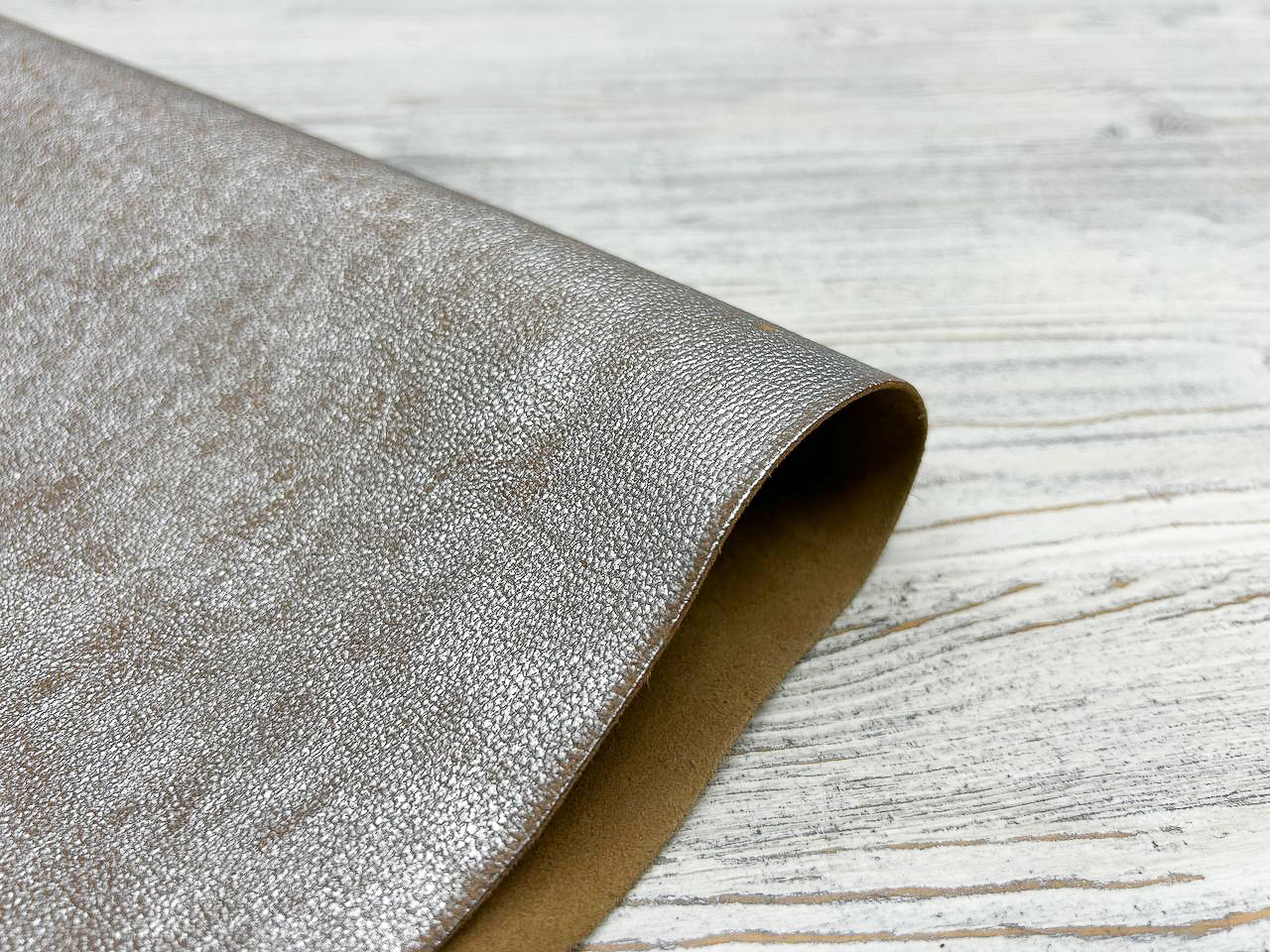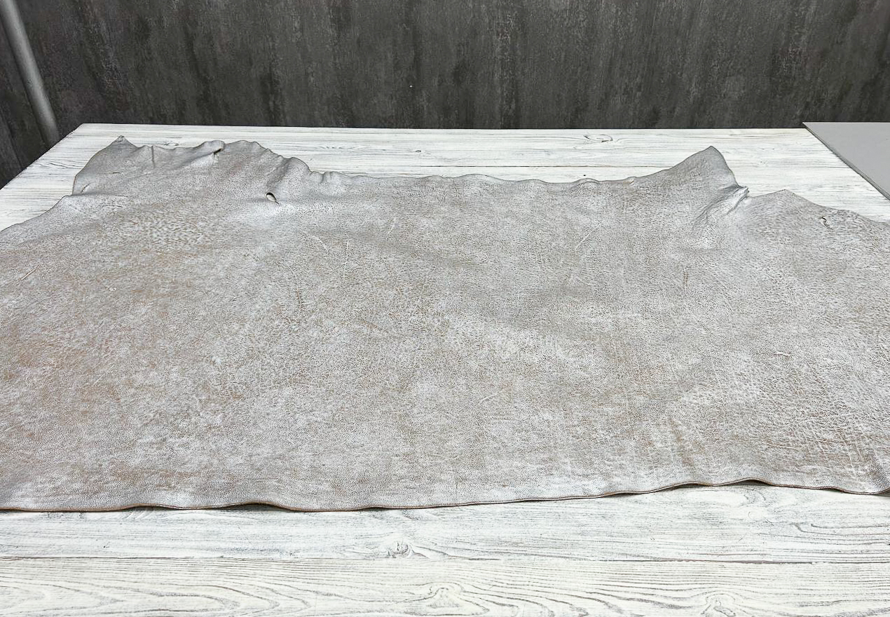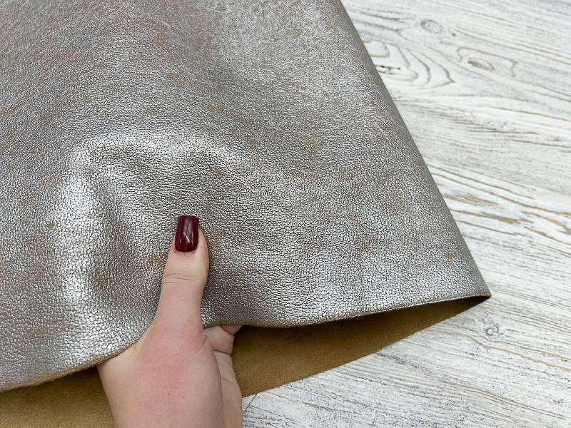 Поверхность: Натуральная, разбитая структура с уникальной мелкой зернистостью и с винтажным окрасом лицевой стороны с красивый серебристый цвет. Обратите внимание на данный окрас - он подчеркивает фактуру и создает уникальный рисунок на лице. Кожа патинируется со временем, прекрасно принимает тиснение и формуется.