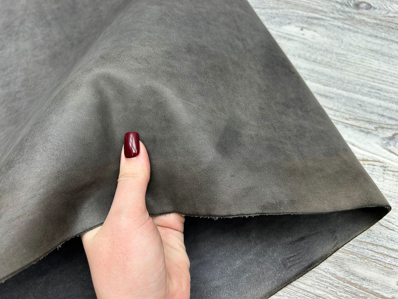 Поверхность: Натуральная, слегка разбитая структура с уникальной мелкой зернистостью и тактильным восковым финишем. Кожа патинируется со временем, прекрасно принимает тиснение и формуется.