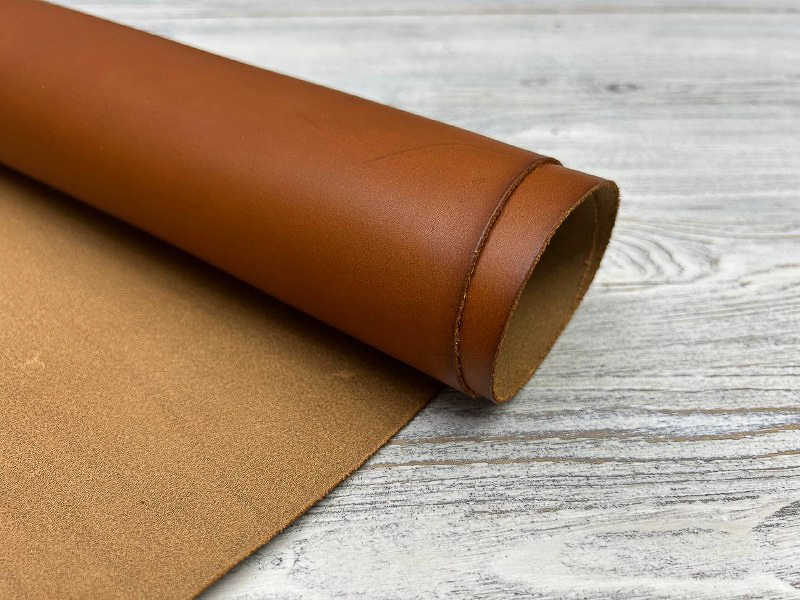 Лицевая поверхность: Гладкая, максимально наполненная, насыщенного коньячного цвета. Плотная, но при этом пластичная, хорошо ложится в изделия различной формы.