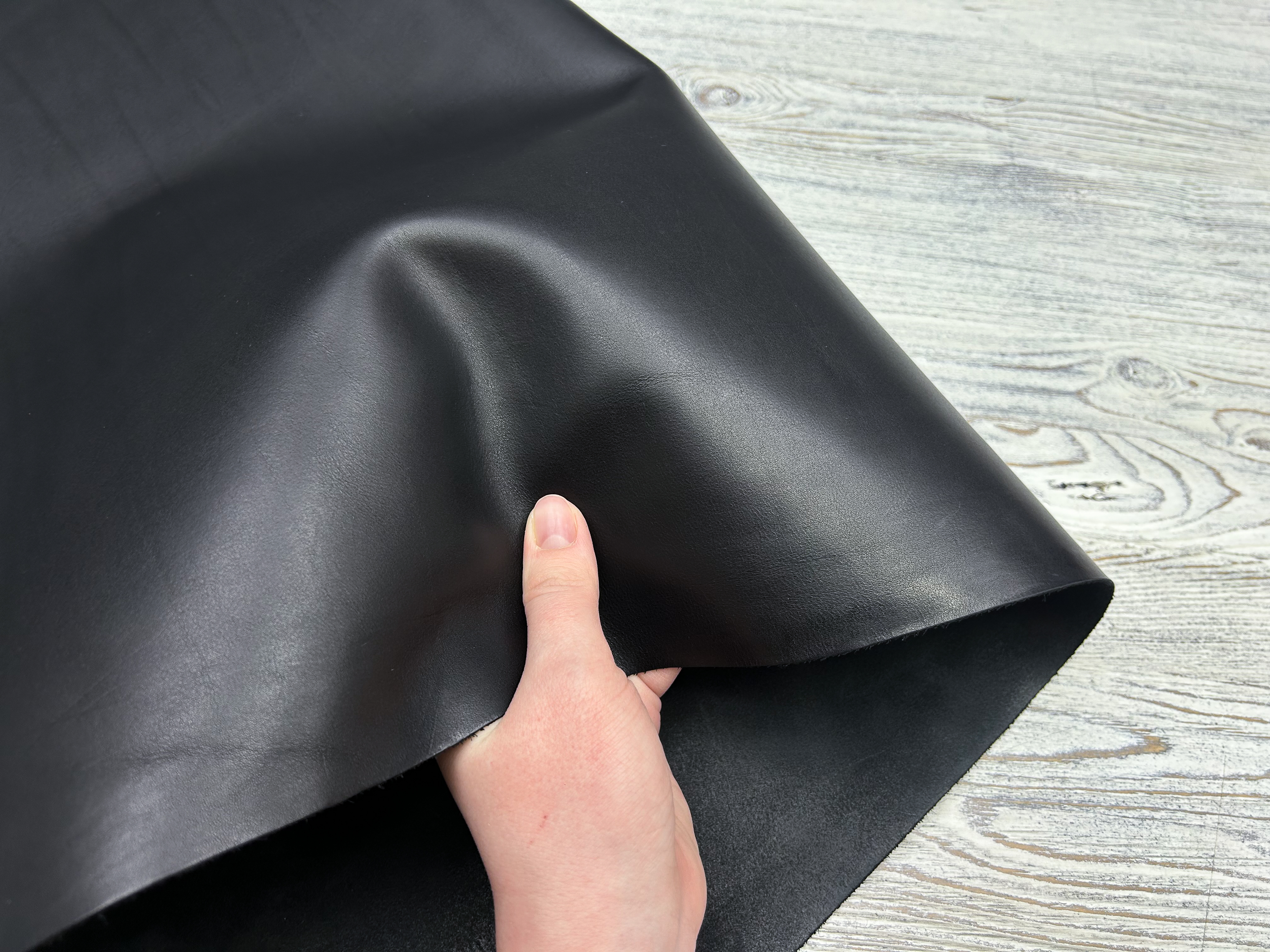 Лицевая поверхность: Гладкая, наполненная, насыщенного коньячного цвета. Плотная, но при этом пластичная, хорошо ложится в изделия, которые должны держать форму.