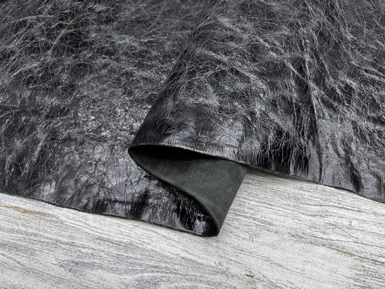 Уникальная кожа хромового дубления с обработкой лица в стиле "битый лед". Неповторимый вид в каждой детали.