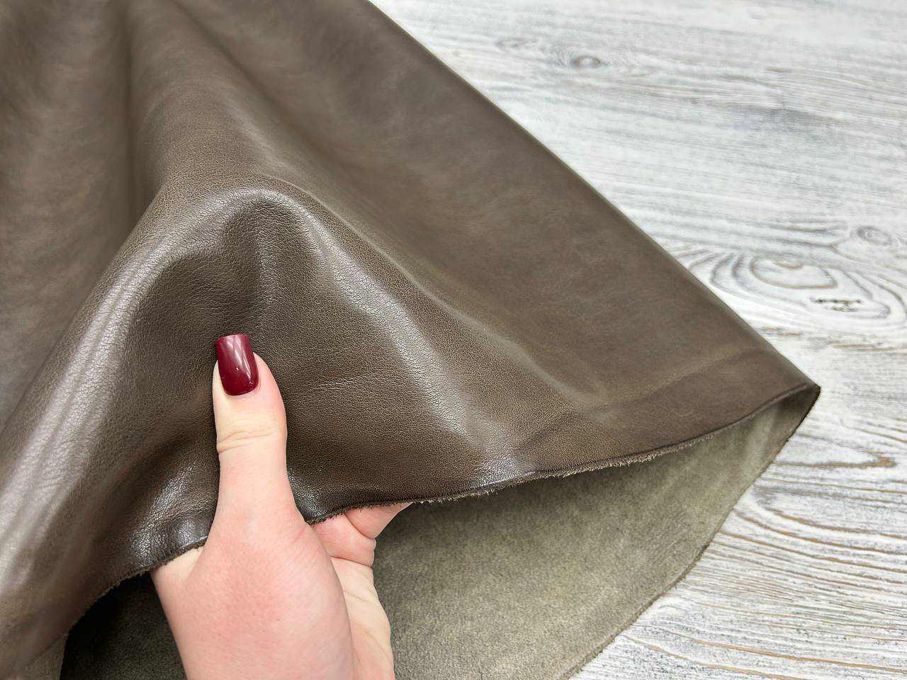 Финиш "сапфировый блеск" — это визитная карточка этой кожи. Он достигается не лаковым покрытием, а бережным прокатыванием специальными валиками, которые "запекают" верхний слой, создавая прочный и глубокий натуральный глянец, устойчивый к истиранию.