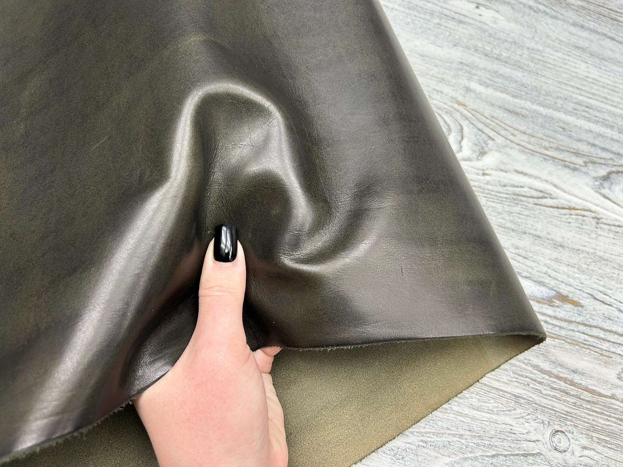 Финиш "сапфировый блеск" — это визитная карточка этой кожи. Он достигается не лаковым покрытием, а бережным прокатыванием специальными валиками, которые "запекают" верхний слой, создавая прочный и глубокий натуральный глянец, устойчивый к истиранию.