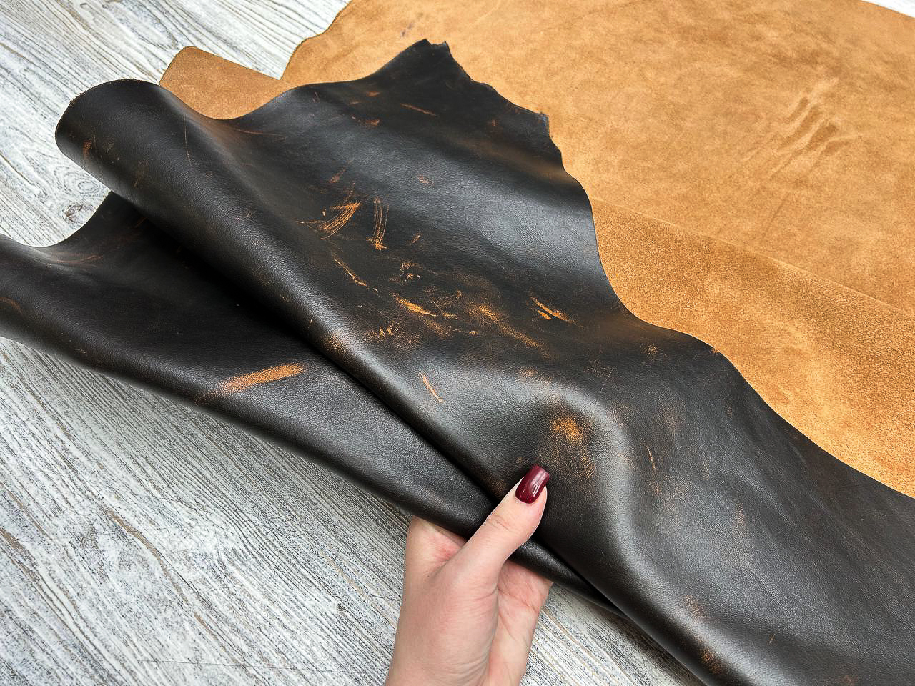 Перед вами лот из двух шкур/отрезов шкур.