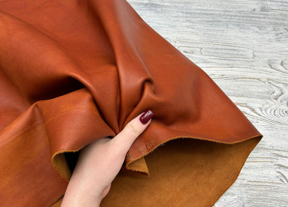Уникальная кожа комбинированного дубления с облачным окрасом лица и шелковистым финишем.