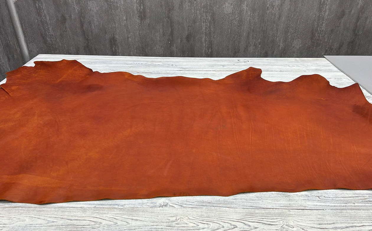 Поверхность: Натуральная, с уникальным методом окрашивания лицевой стороны и придания глубины окраса. Имеет красивый натуральный, а потому не равномерный мелкозернистый рисунок. Цвет - насыщенный рыже-коричневый.