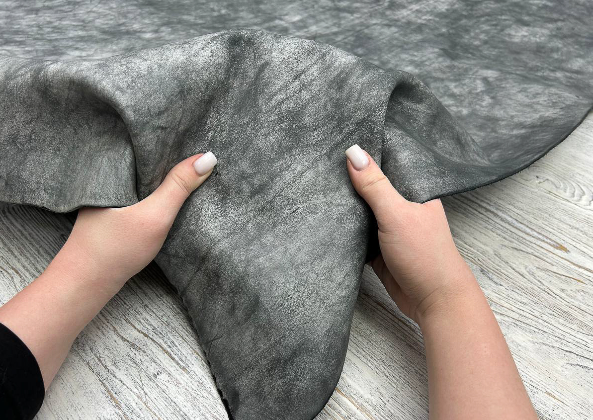 Артикул Alaska- эта кожа сквозного анилинового крашения, со средней разбивкой в барабане, а также с обработкой маслами и восками. Ее особенностью является пропитка и финиширование лицевого слоя белым воском, за счет чего создается неповторимый эффект на коже. При необходимости вы можете затереть белый воск до нужной степени, расставляя соответствующие акценты на изделии и регулируя, тем самым глубину и насыщенность основного оттенка кожи.